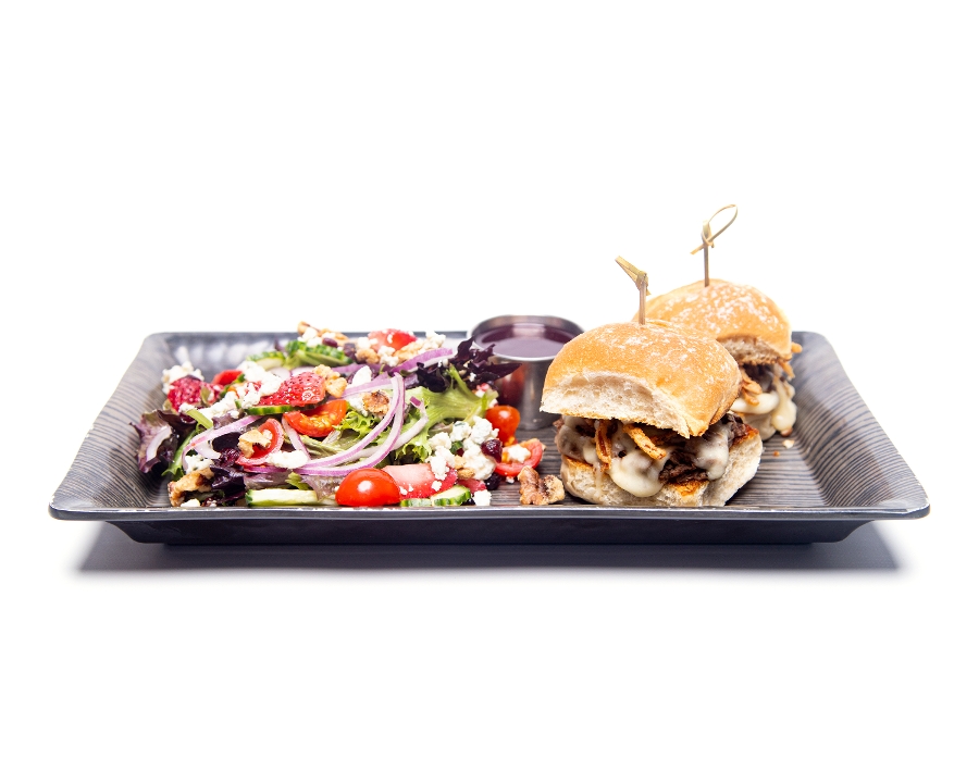 short rib, fresh mozzarella, garlic aioli, & fried onion, on a buttered, toasted roll.