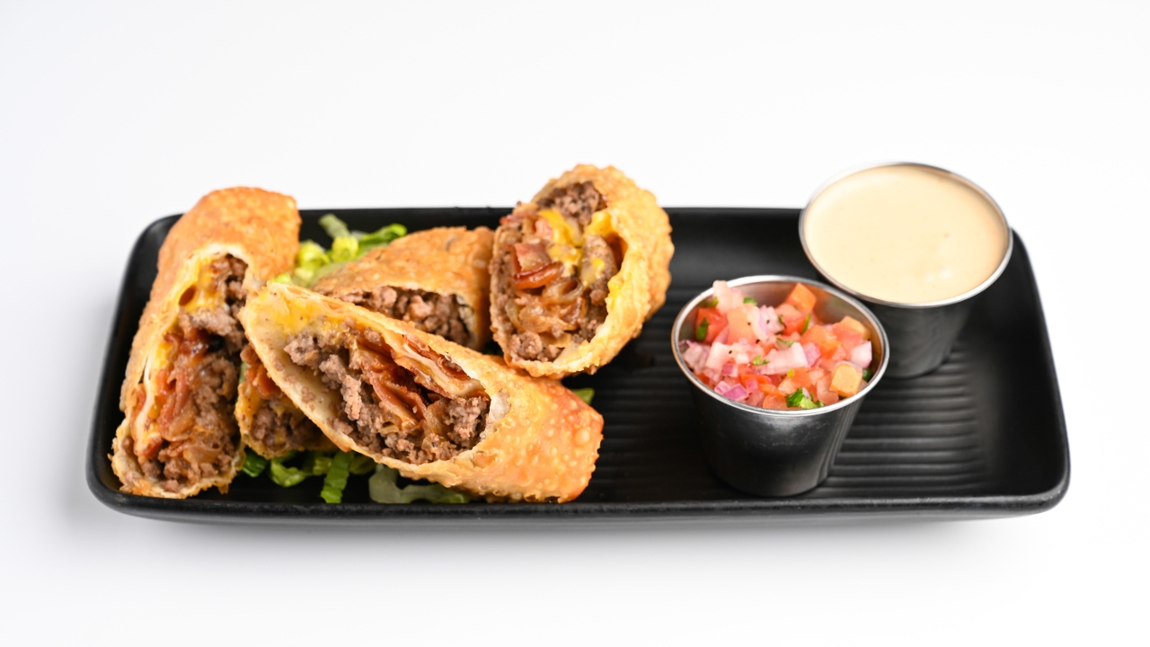 two egg rolls filled with ground beef, bacon, caramelized onions, American cheese & our Signature Tap Sauce.
